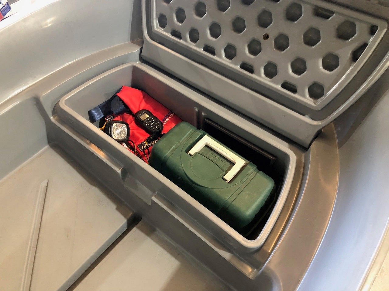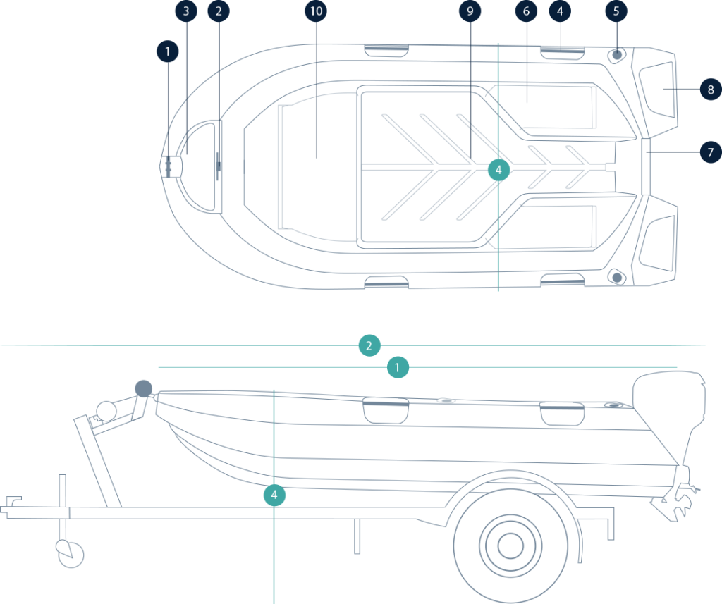 All the internal and gunwale surfaces are non-slip, and the hand rails are more usable than its predecessor. Other features include through hull drainage in anchor well, easy boarding via the larger rear steps, drainage channel on floor, divider option for front storage compartment, wide gunwales and a recessed tow eye .